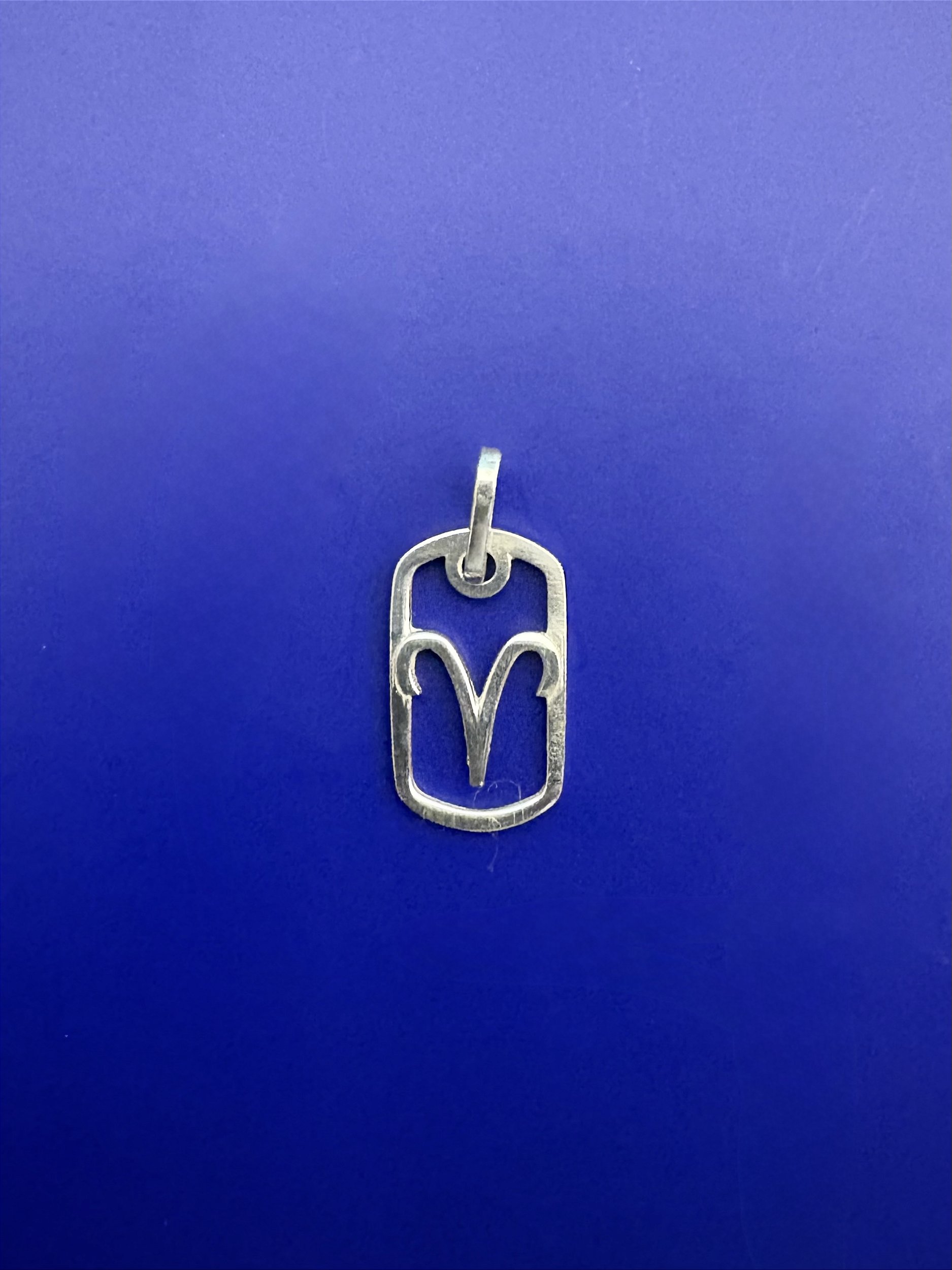 Pingente formato de TAG e com o Signo de Áries seu interior, feito em PRATA 925.