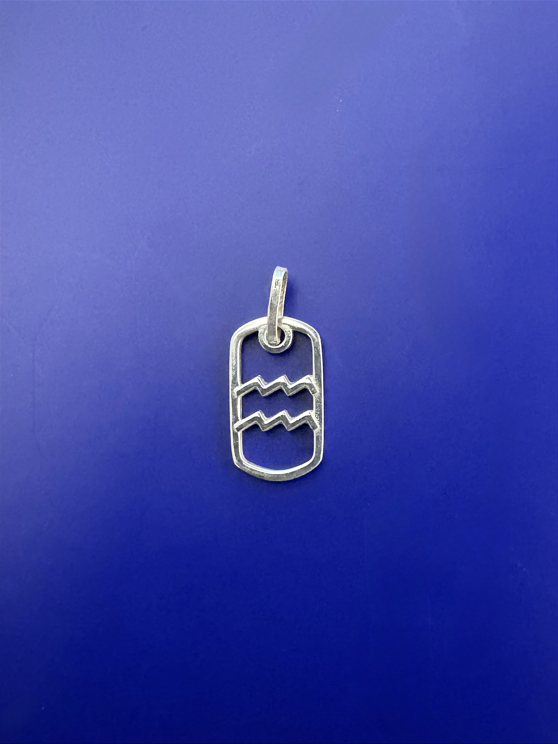 Pingente formato de TAG e com o Signo de Aquário no seu interior, feito em PRATA 925.