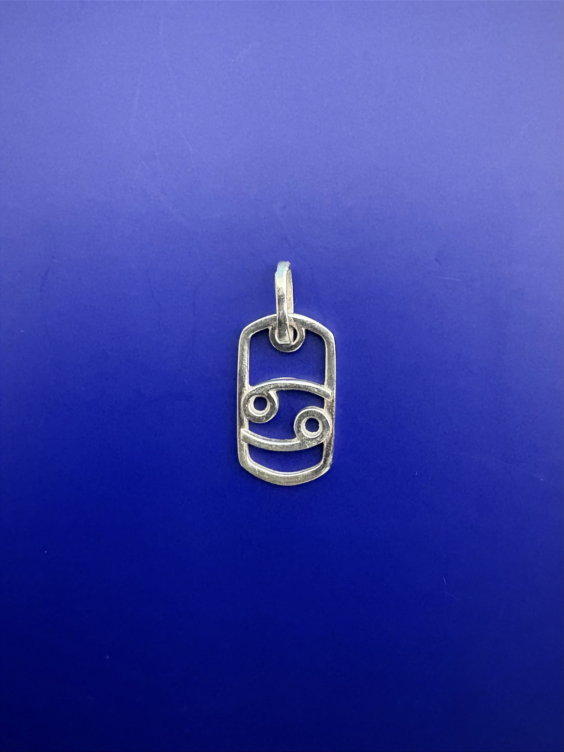 Pingente formato de TAG e com o Signo de Cancer no seu interior, feito em PRATA 925.
