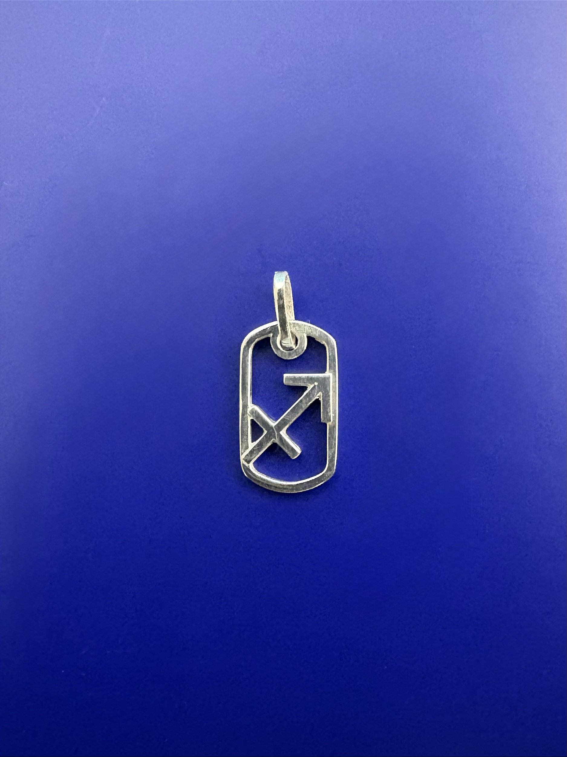 Pingente formato de TAG e com o Signo de Sagitário no seu interior, feito em PRATA 925.